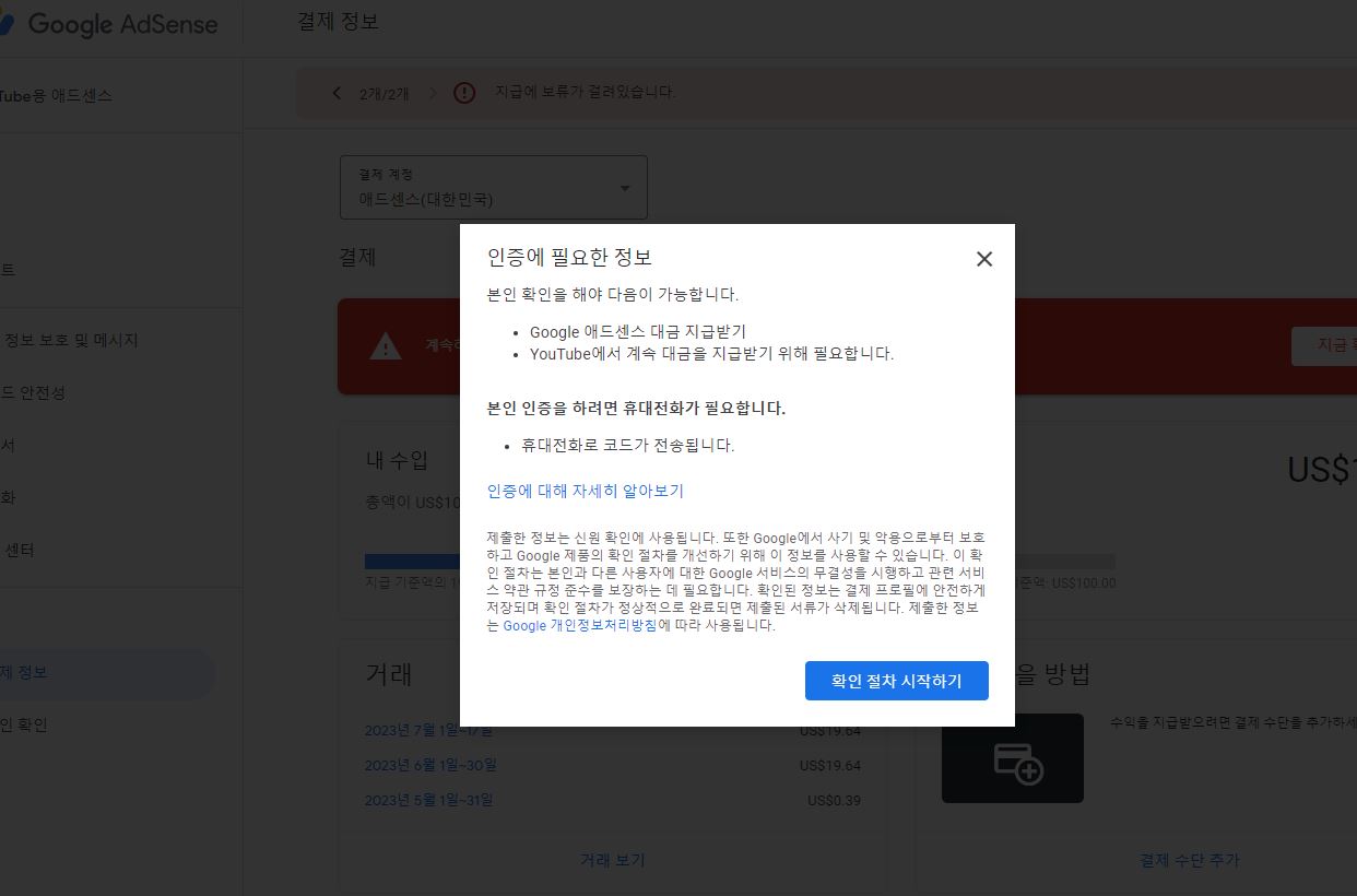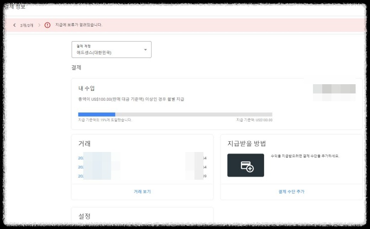 구글 애드센스 - 지급이 보류 중입니다.