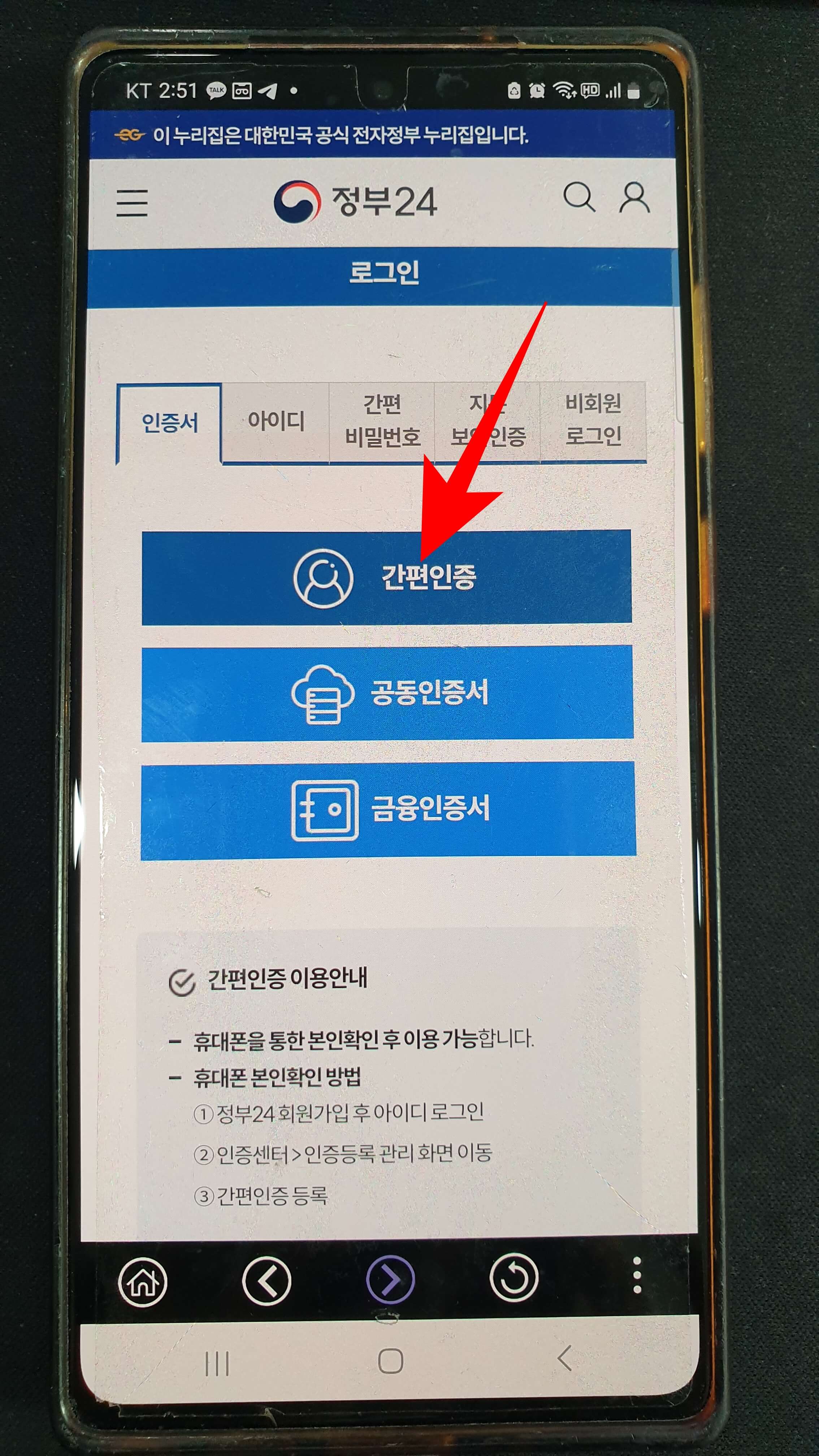 1. 정부24 앱을 열고 로그인 터치합니다. 간편 인증 터치, 네이버인증 터치합니다. (각자 편한 방법으로 로그인하세요.) 저는 네이버인증서가 등록되어 있어서 네이버 인증으로 진행합니다. 네이버 인증서 등록방법이 궁금하신 분은 아래를 참고해 주세요.