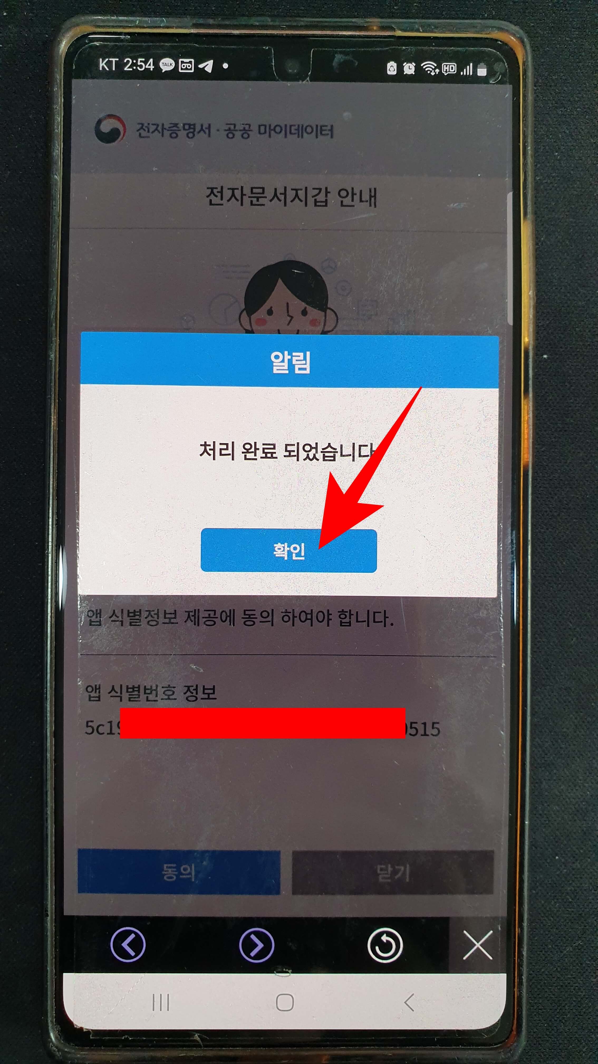 3. 전자증명서를 터치하고, 하단의 '동의' 터치, '확인' 터치합니다.