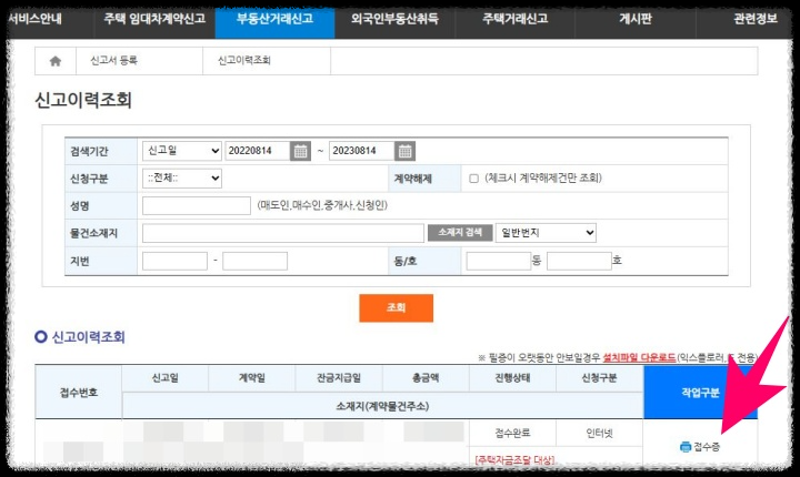 부동산전자계약을 하면 자동으로 부동산거래관리시스템에 거래신고가 되는데, 아래 사진처럼 매매 신고는 되었으나, 주택자금조달계획 및 입주계획서가 제출이 안 되어 계속 '접수중'으로 뜹니다.