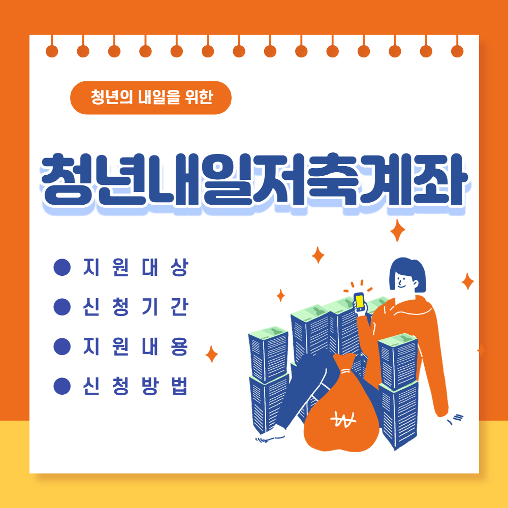 청년내일저축계좌는 일하는 중간 계층 청년이 근로빈곤층으로의 하락을 사전 예방하고, 빨리 사회에 안착할 수 있도록 자산 형성을 지원하고 있습니다. 이번 글에서는 청년내일저축계좌가 무엇이며 신청기간, 지원대상, 지원 내용, 신청 방법에 대해 알아보겠습니다.